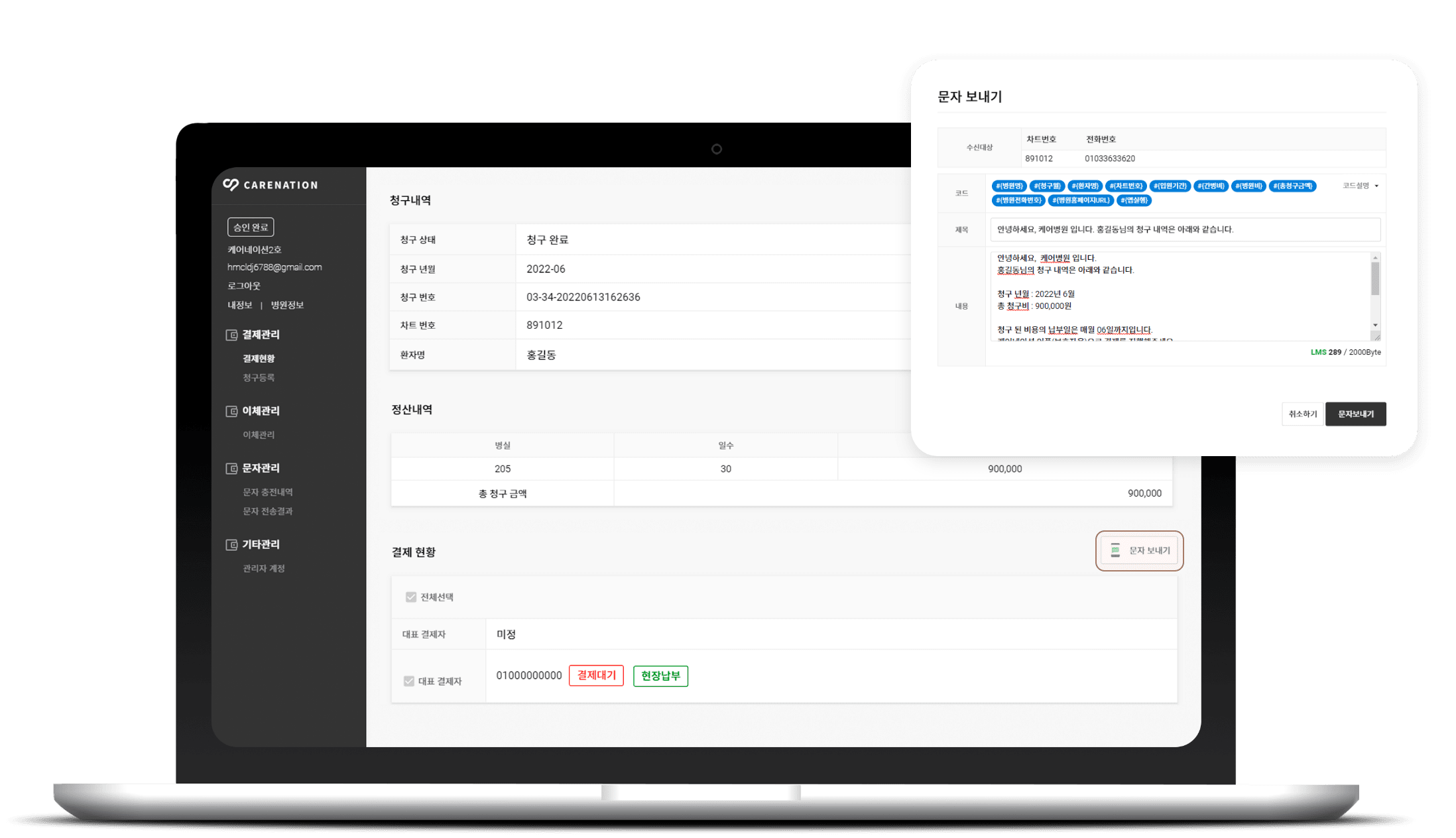 관리자 페이지에서 환자 정보와 정산내역을 확인 후,
